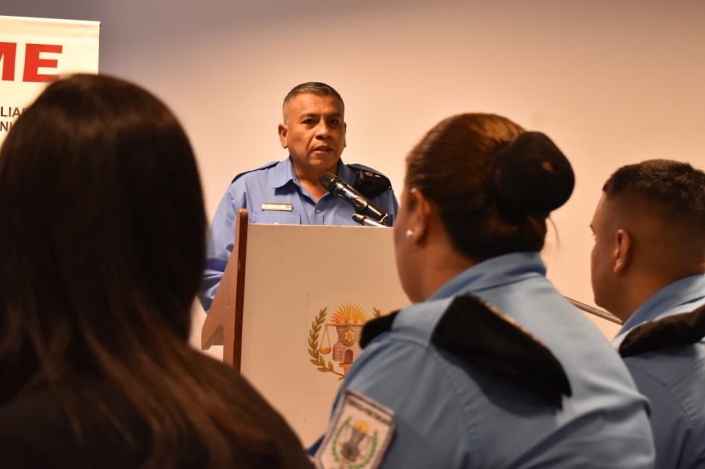 Del acto participaron el director general del Servicio Penitenciario, Enrique Daniel Torres, junto a la subdirectora general, Valeria Romina Calisaya, quienes acompañaron al personal en esta jornada institucional.
