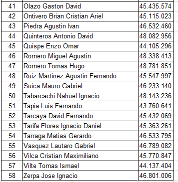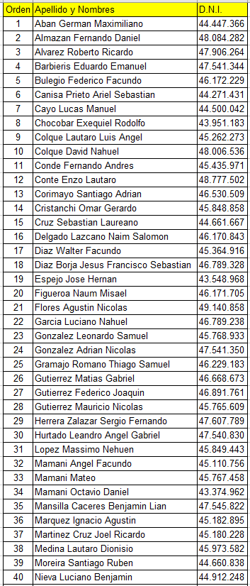 Quienes no superaron la presente etapa de selección, podrán comunicarse por los medios de comunicación para coordinar la devolución de la documentación presentada en la Escuela de Cadetes N°6.044 Alcaide José Luis Herrera.