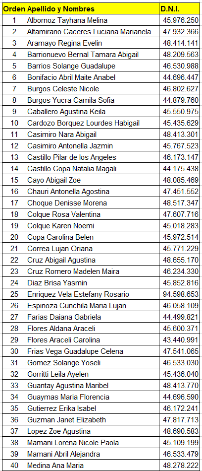 • Se adjunta la siguiente nómina de los postulantes APTOS.